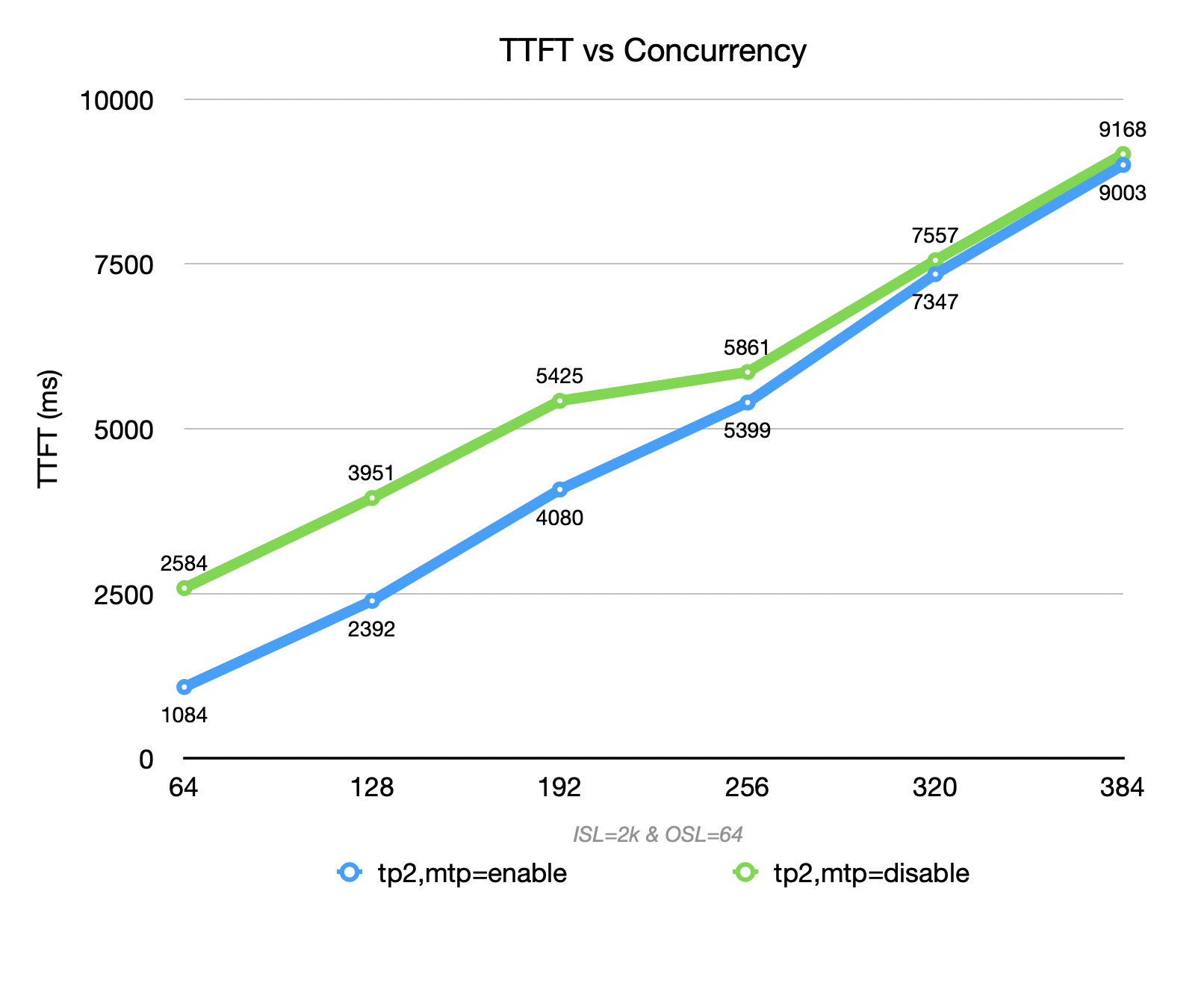 Therefore, the overall throughput is lower than that achieved with MTP disabled at both low and high concurrency levels.